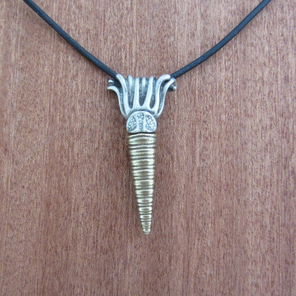 Our latest necklace depicts Orthoceras, a nautiloid cephalopod that swam the seas more than 450 million years ago!