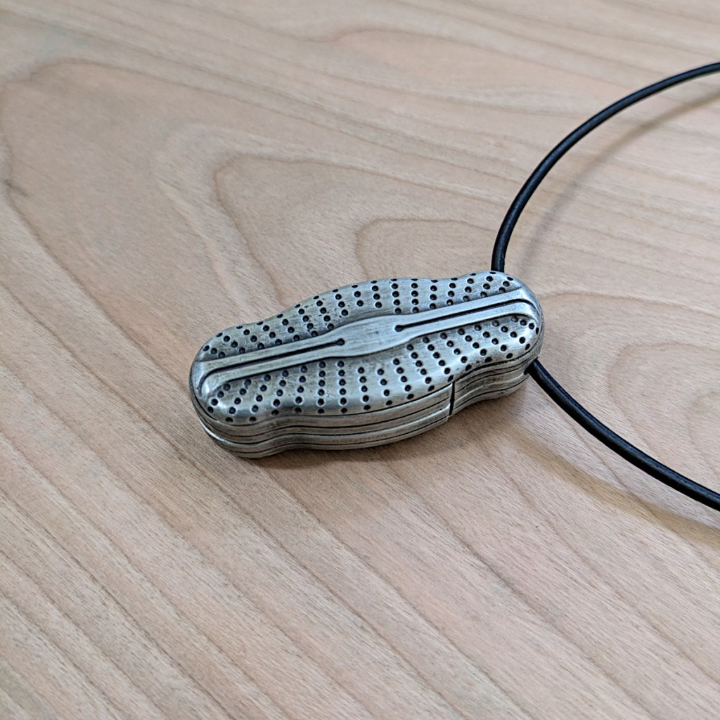 Here’s a preview of our upcoming magnifier pendant depicting a pennate diatom of the genus Sellaphora.